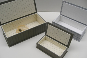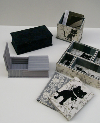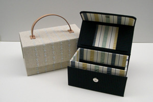 | 美しい布、楽しい布を使って、端正で綺麗な箱を制作している