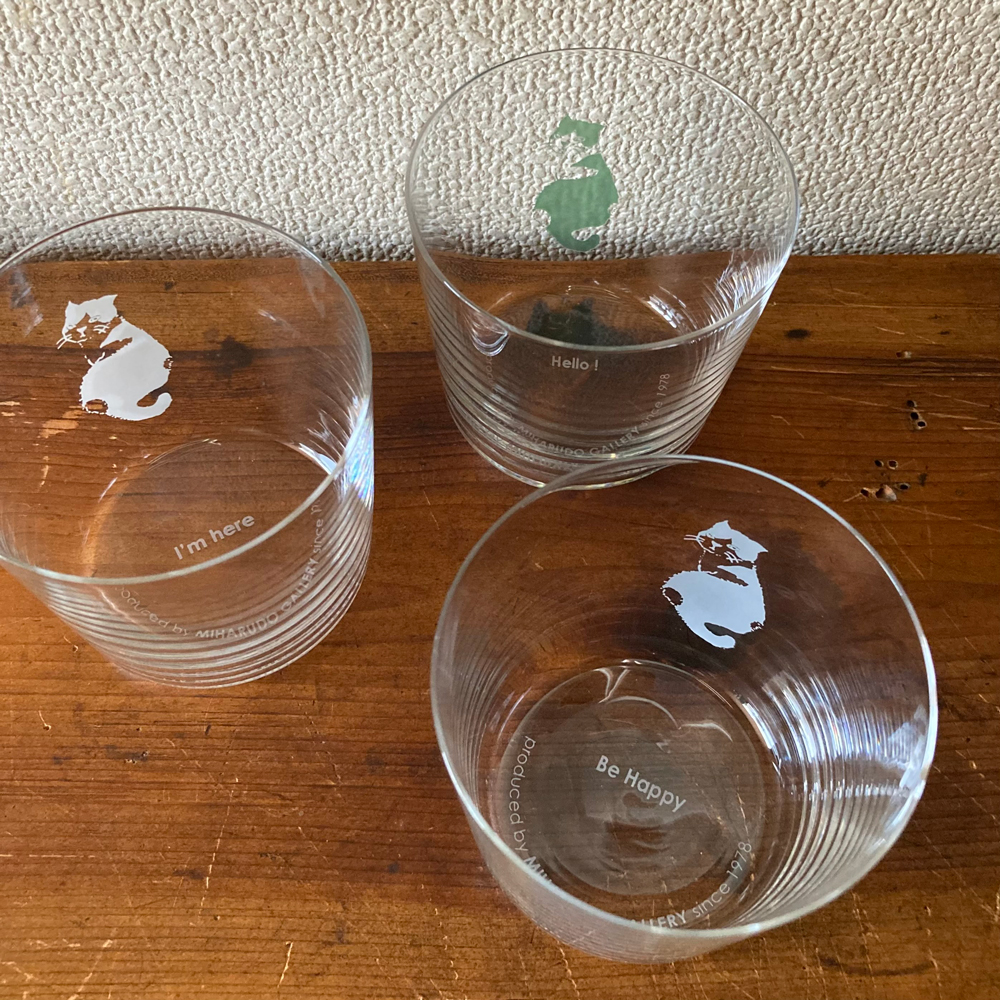 | ■ メッセージグラス展示会 2020.12.18 12月18日(金)〜20日(日) 、 24日(木)〜26日(土) 14:30〜19:00 2020年は、人々がコミュニケーションを取りにくい辛い年になってしまいました。少しでも心が繋がりますように、底にメッセージを入れたグラスを作りました。ぜひ、大切な方にメッセージを伝えてください。 * コロナ禍のため、お越しのご都合を事前にご連絡ください。 Tel/Fax : 03-3952-7977 E-mail : miharudo@xg8.so-net.ne.jp あやせさやかさんの振り向き猫のイラストをボディにプリント(3色)グリ(グレイ)の底には Be Happy ライム(グリーン) Hello ! ブラン(ホワイト) I'm here グラスサイズ:10オンスオールド 高さ7.5x直径8 (底7)cm 価格:1,500円 (税抜き) |